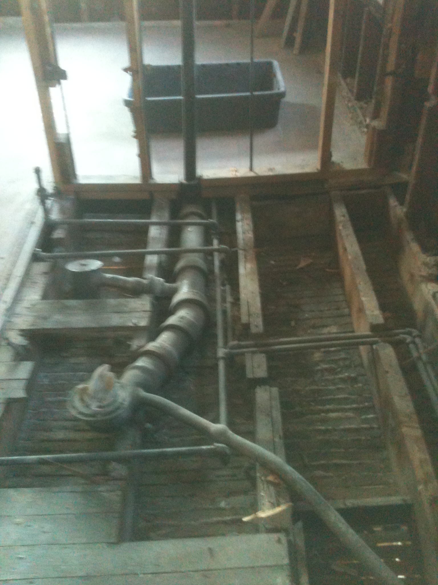 I have also completely gutted the main floor kitchen and half bath. Discovered a hidden brick chimney in the corner of the room and removed that. I gutted the upstairs bathrooms, broke up the cast iron porcelain tubs with a sledge hammer and removed the floor there in preparation for sistering new floor joists in that section like I did in the other. This also allowed me to cut out the existing cast iron plumbing drain system with a rented pipe cutter. Those pipes were really heavy, as was the tool to cut them. It’s no wonder the floor sagged.